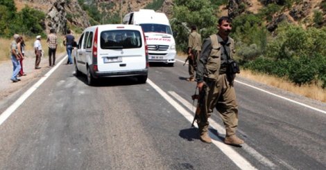 PKK’ lı teröristler yol kesmeye devam ediyor. Tunceli-Pülümür karayolunu kesen hainler Ağrı ve Erzincan’daki birliklerine teslim olmak için yola çıkan Adil Kabaklı ve Müslüm Altıntaş’ı kaçırdı.