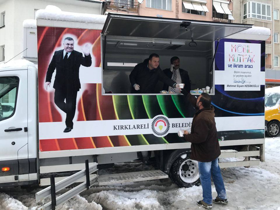 Soğuk havalarda sıcak çorbayla vatandaşlarımızın güne güzel başlamalarını istediklerini ifade eden Kırklareli Belediye Başkanı Mehmet Siyam Kesimoğlu ‘’ Mobil Mutfak aracımız ile emekçilerimizin ve öğrencilerimizin bulunduğu noktalarda sıcak çorba ikramına başladık. Bu soğuk havalarda vatandaşlarımızın birazda olsa içini ısıtabilmek bize mutluluk veriyor" dedi.