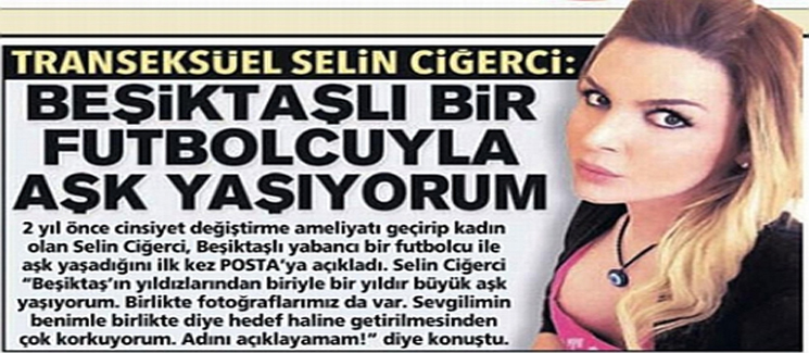 Selin Ciğerci, 2 yıl önce geçirdiği ameliyatla cinsiyet değiştirdi. Magazin gündemine bomba gibi düşen haber ise, Ciğercinin, Beşiktaşlı yabancı bir futbolcuyla aşk yaşadığını iddia etmesi oldu. Selin Ciğerci, Posta Gazetesi’ne verdiği röpörtajda, adını kendisiyle birlikte olduğu için hedef yapılmasını istemediğinden dolayı sır gibi saklayan Ciğerci, Beşiktaş’ın yıldız futbolcularından birsiyle 1 yıldır birlikte olduğunu açıkladı. Sevgilisiyle çok mutlu olduklarını ve boy boy fotoğrafları olduğunu söyledi.