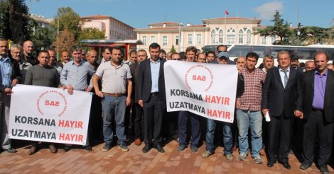 Belediye binası önüne ‘’Korsana Hayır’’ sloganları atarak yürüyen yaklaşık 100 kişilik grup, bir süre sonra olaysız dağıldı.
