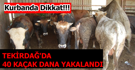 Kaçak danaların, Tekirdağ Malkara ilçesine yaklaşan kurban bayramında satılmak üzere kaçak olarak getirildiği tespit edildi. Anadolu’dan getirilen 40 adet büyükbaş hayvanlara Tarım İl Müdürlüğü tarafından el konuldu. Malkara’da Karacahalil’de bulunan bir ahıra kurban bayramında satılmak üzere 40 büyükbaş hayvanın getirildiği ihbarını alan ekipler, ahırda 40 danayı yakaladı. Hayvanların, Anadolu’dan yasadışı yollarla getirildiği tespit edildi. Hayvanların küpesiz olduğunu bildiren yetkililer, hepsinin kesilmesine karar verdi. Hayvanlar kesim için mezbaya getirilirken, konuyla ilgili kaçakçılığı yapanlar hakkında cezayi işlemler başlatıldı.
