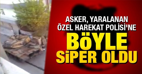 Şırnak’ın Cizre ilçesinde, operasyonlar devam ediyor. Yer yer sıcak çatışmaların yaşandığı ilçede, yine bir çatışmada yaralanan özel harekat polisine asker siper oldu.